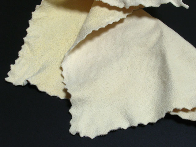 さらに注意が必要なのは、そのままの状態で完全に乾燥させてしまうとゴワゴワというかパリパリな状態になってしまう点。乾燥後にしなやかな状態を保つためには、生乾きの状態で揉みほぐしてあげる必要があります。